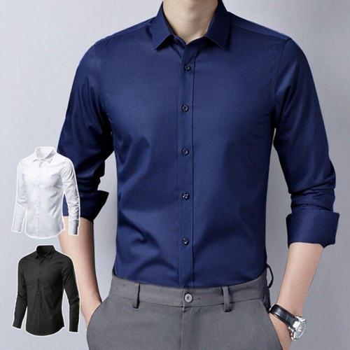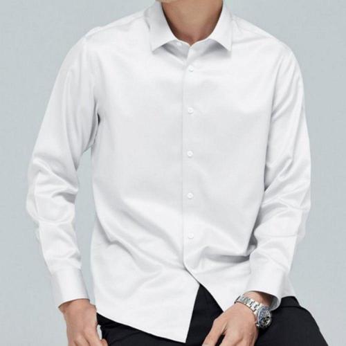 빛깃닥 남성용 구김없는 긴팔 베이직 슬림핏 순색 와이셔츠