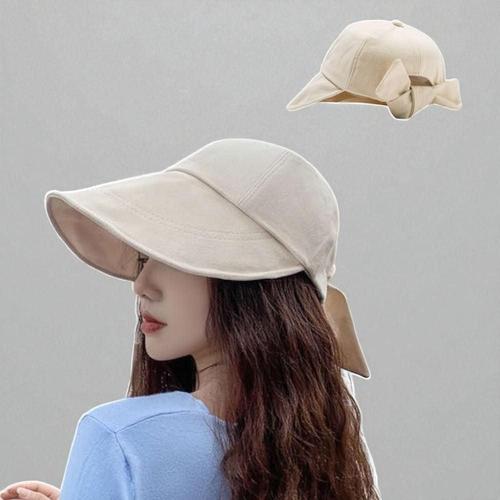 [다잇템]여성 와이어챙 여행룩 뒷리본 썬캡 소재 모자