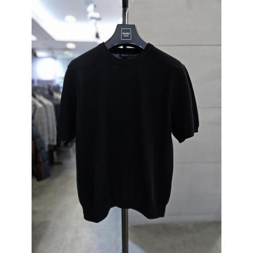 [바쏘옴므]바쏘옴므 세이브존03 바쏘옴므 남자 블랙 와플 라운드 반팔 니트 WSAFA2WR04-A (46626062)