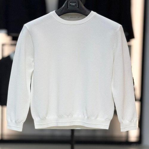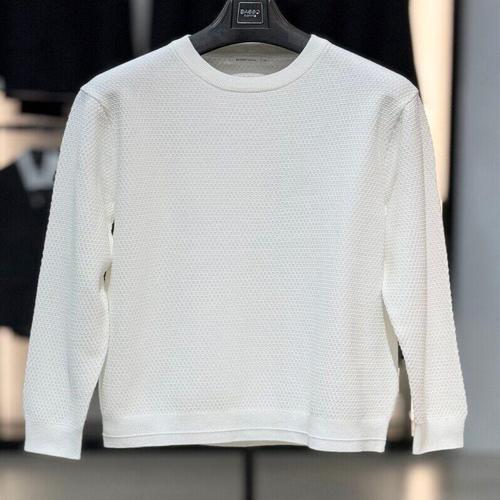 [바쏘옴므]화이트 면 혼방 와플 엠보 라운드 니트_SC