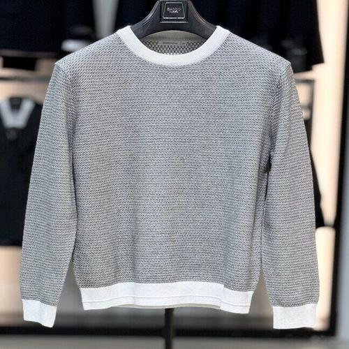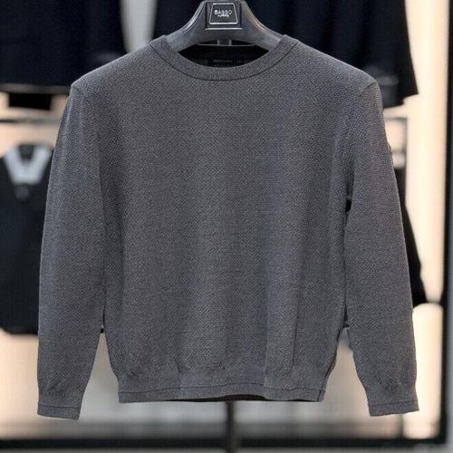 [바쏘옴므]그레이 면 혼방 와플 엠보 라운드 니트_SC