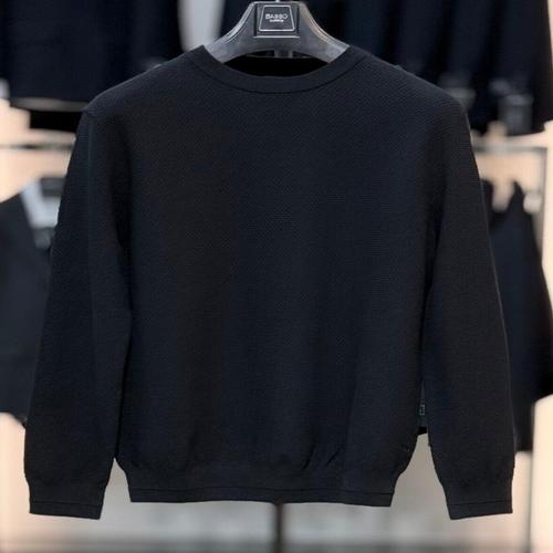 [바쏘옴므]블랙 면 혼방 와플 엠보 라운드 니트_SC