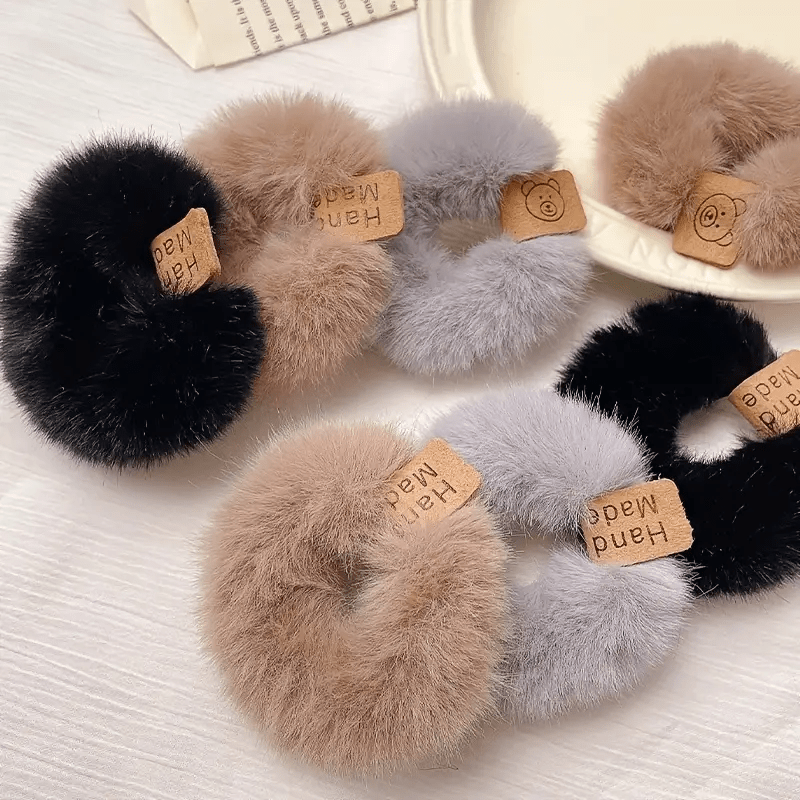 TEMU 7개입 플러시 베어 머리끈 - 귀여운 곰 모양 머리띠, 푹신한 귀, 고탄력 내구성, 땋은 머리, 번, 포니테일용, 크리스마스 할로윈 액세서리 (일상 및 휴일용)
