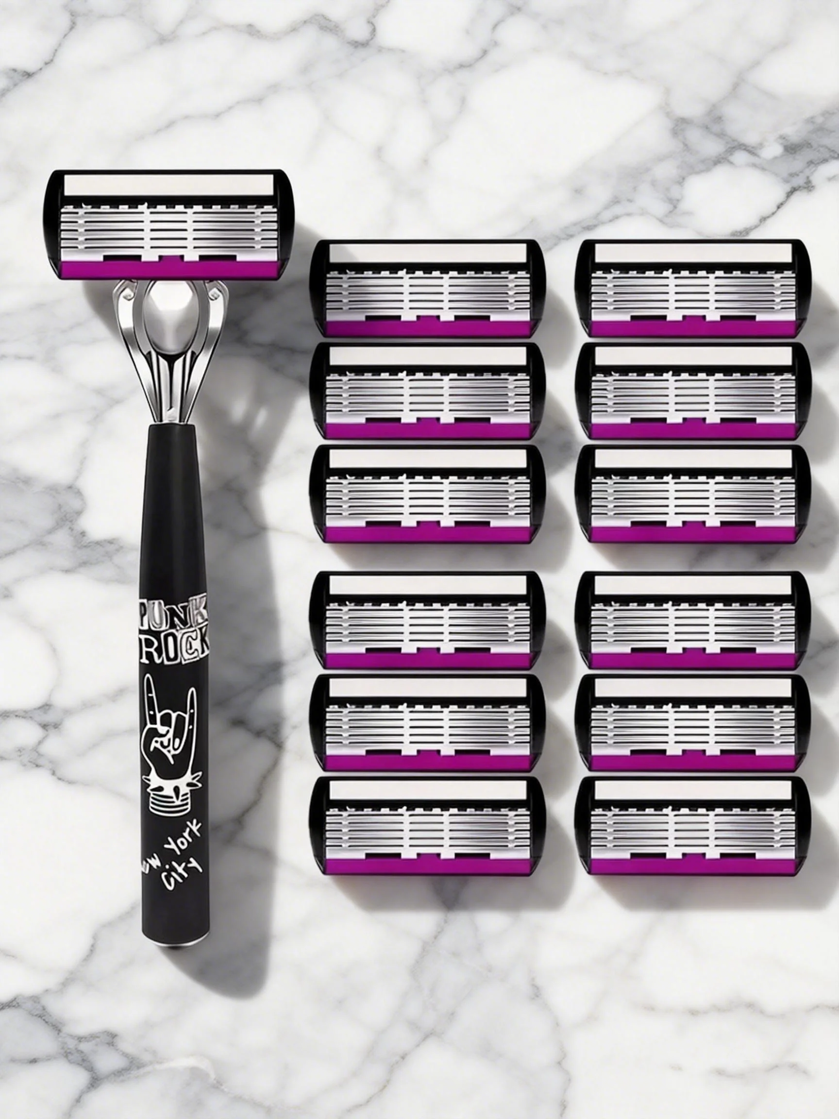 1핸들+18블레이드 여성용 수동 안전 면도기 6중 스테인리스 스틸 면도/제모 블레이드 교체 가능 블레이드