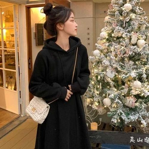 [엄지척]여자 겨울 주말 외출 나들이 룩 기모 후드 롱 원피스_19912683_667501