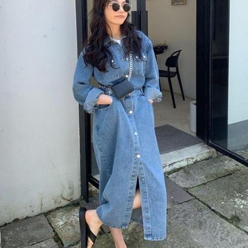 [엄지척]와이드한 넉넉한핏 허리조절 데님 원피스 외출룩_19913555_667501