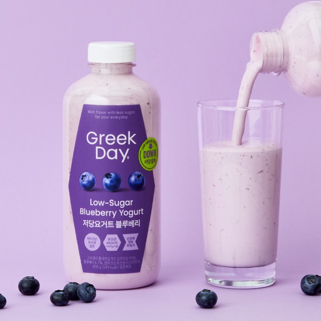 그릭데이 신제품 당은 낮게, 항료 없이 과육이 씹히는 리얼 블루베리 요거트!