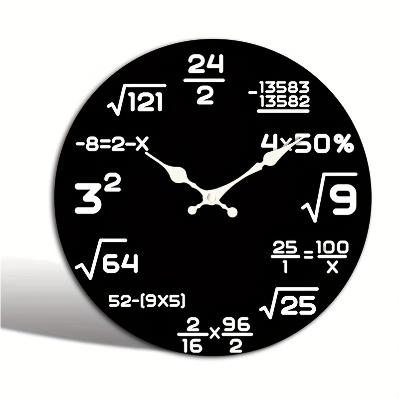 TEMU 1pc Silent Quartz Movement Math Wall Clock - 원형 나무 시계, 수학 공식이 있는, 침실, 거실, 사무실, 주방, 욕실에 적합 - 배터리 작동 (AA 배터리 미포함), 주방 액세서리| 수학 주제| 나무 소재 시계, 시계 벽 장식