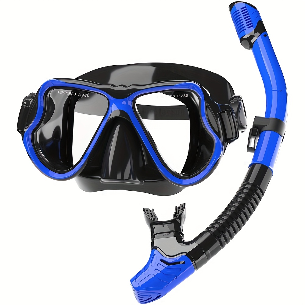 TEMU 어른용 대형 시야 안티포그 스노클 마스크 세트, 조절 가능한 스노클링 수영 훈련용 안경|스노쿨링마스크