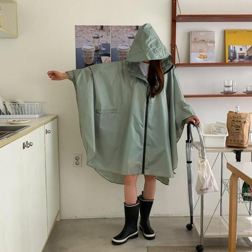 [하프클럽/]남녀공용 오버핏 롱 레인코트 패션 후드형 전신 우비