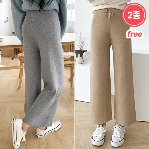 [2종세트] 보들 따뜻한 허리밴딩 니트 와이드 일자 팬츠 n1