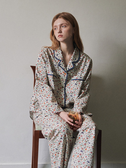 [울랄라파자마] 델리아 긴팔 여성페어 크림 (30수)