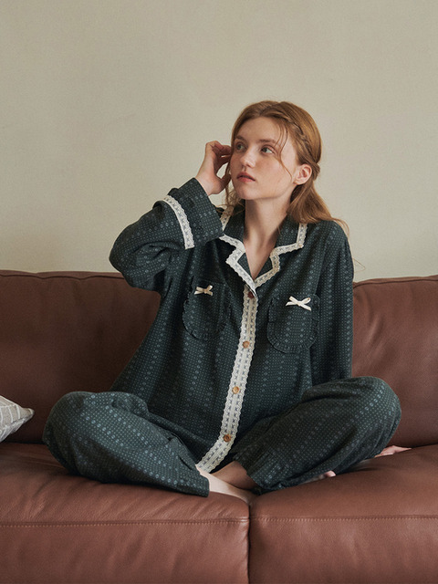 [울랄라파자마] 네쥬 긴팔 여성페어 딥그린 (21수)