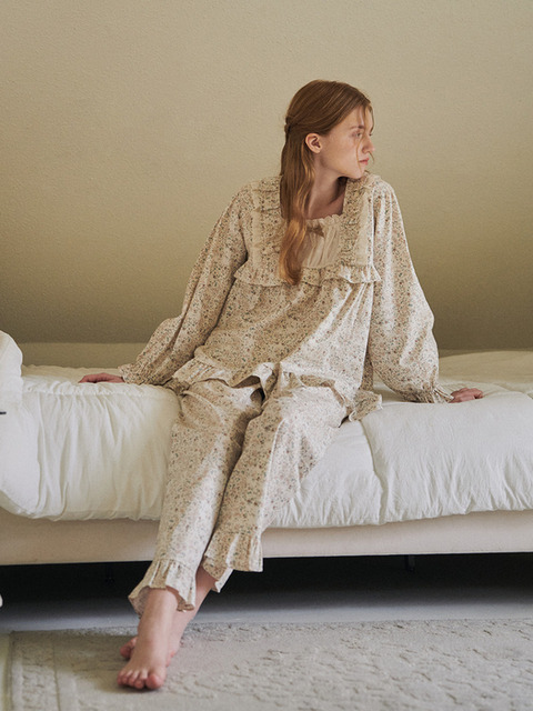 [울랄라파자마] 미뇽 긴팔 여성페어 크림 (21수)