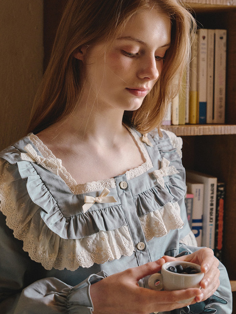 [울랄라파자마] 메디나 긴팔 투피스 스카이블루 (30수)