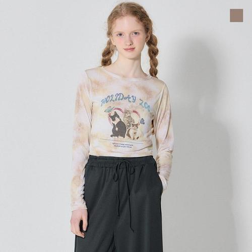 [원더플레이스][더블유스탠다드(W STANDARD)] 고양이 물 나염 티셔츠