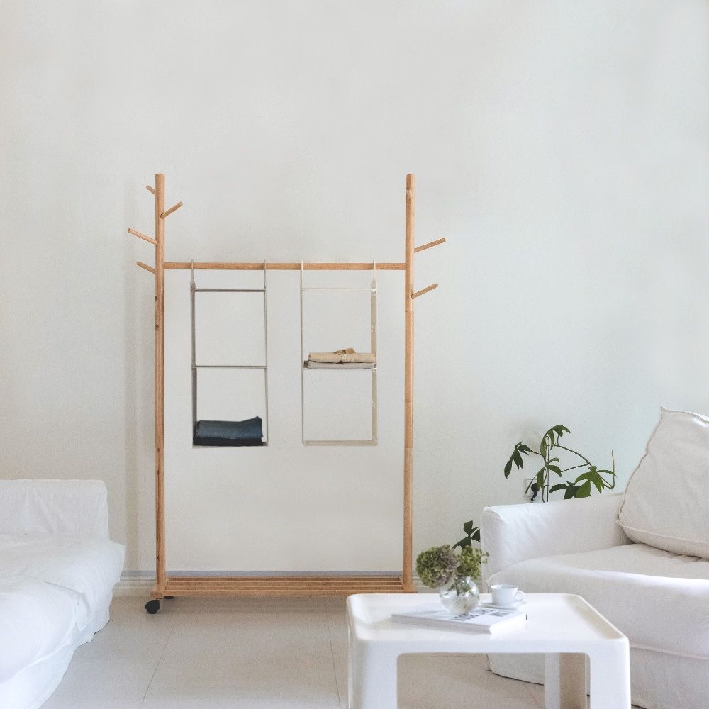 이동식 원목 행거 드레스룸 우드행거 옷방 인테리어 다용도 옷걸이행거 2size