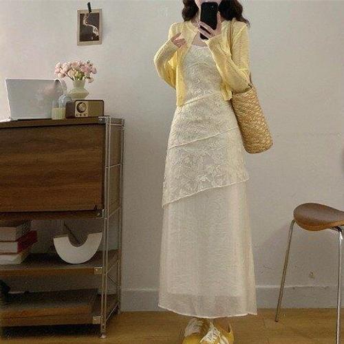 [아리엘스타일]레이스원피스 화사무드 가디건세트 레몬슬릿원피스세