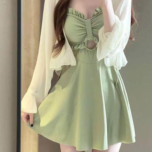 LND 프릴 원피스 수영복 가디건 2종세트 여성 비치웨어 체형커버 WFNLOBP