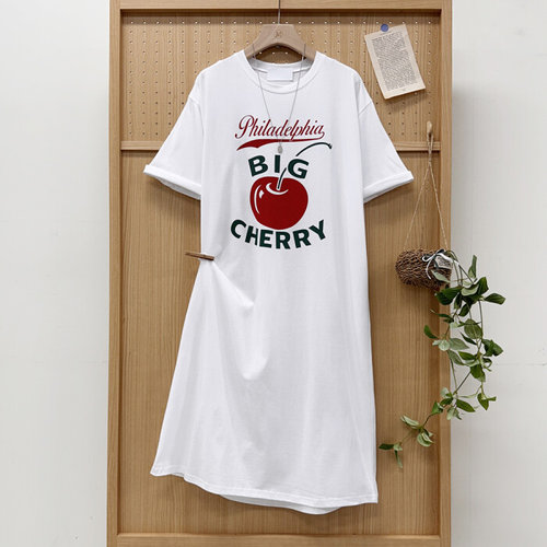 미즈큐즈 / 원단좋은 빅체리 프린트 루즈핏 반팔 롱원피스 2color