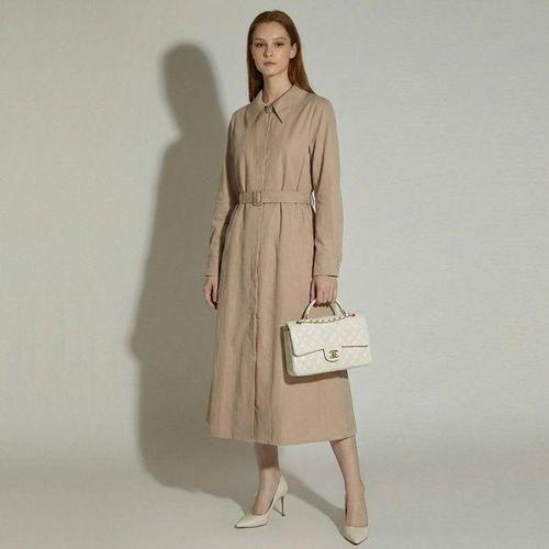 [셀러허브_여성트랜드패션]카라넥 배색 트렌치 플레어 벨트 세트 롱 원피스 자켓