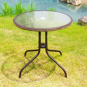 [체어팩토리]로망 라탄테이블 야외용 유리 원형 티테이블 카페 테라스 펜션 리조트 카페
