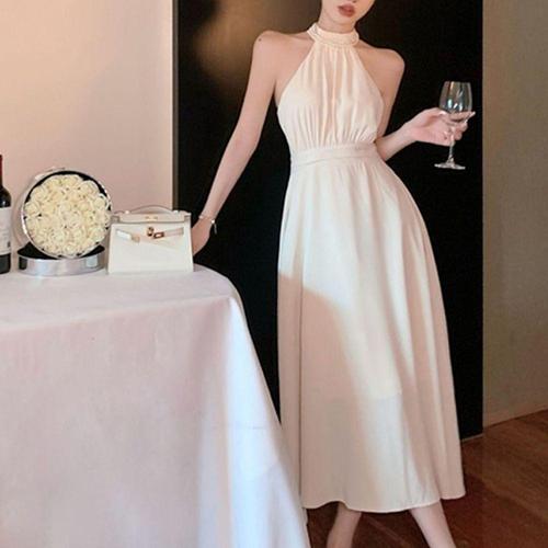 비치팜 / 토파즈 홀터넥 백 리본 셀프 웨딩 파티 피로연 드레스