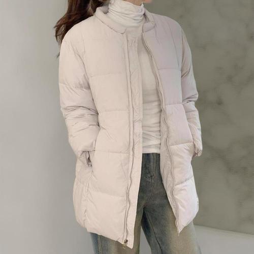 [옷자락] 여성 루즈핏 일상용 경량 웰론 하프 퀼팅 패딩