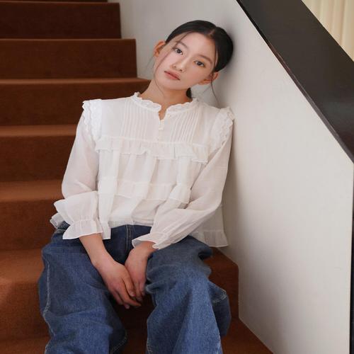 [위시드]펀칭 프릴 버튼업 데일리 블라우스 (WICABL007)