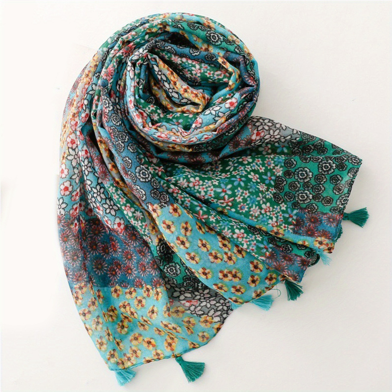 TEMU 여성용 빈티지 플로랄 프린트 스카프, 부드러운 폴리에스테르 섬유, 캐주얼 아웃도어웨어