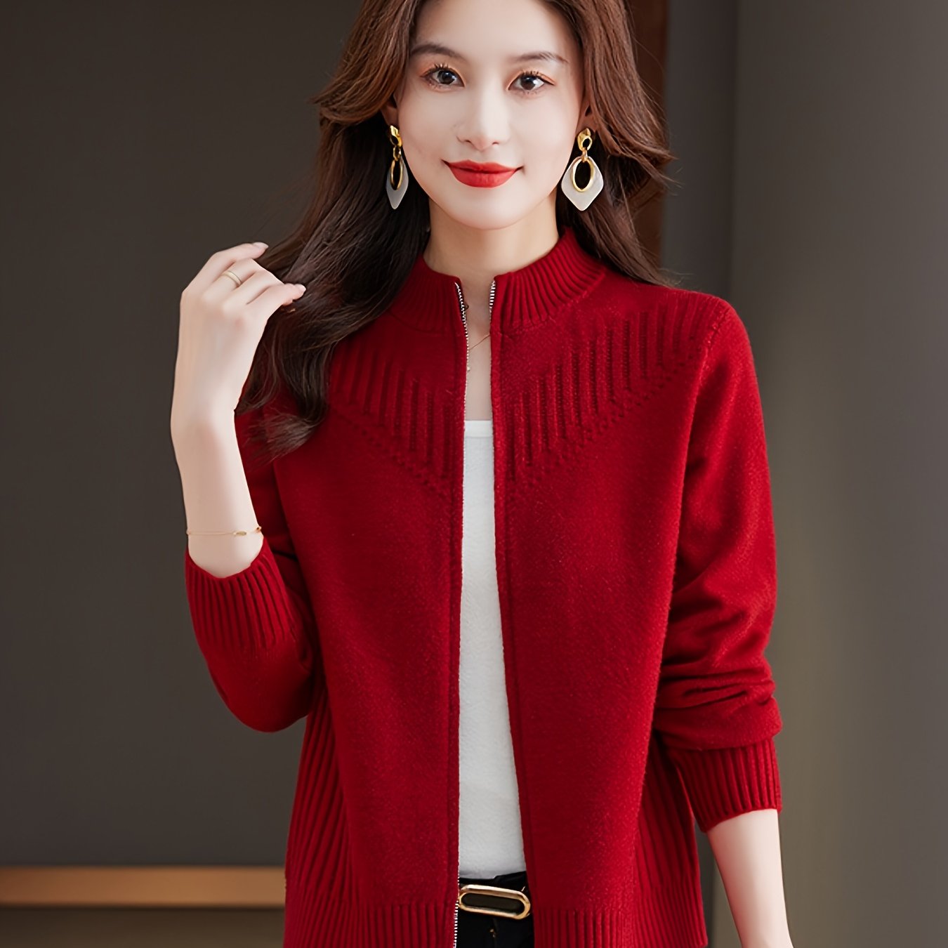 TEMU 새로운 가을 겨울 여성 스탠드 칼라 카디건, 루즈 하프터틀넥 지퍼 스웨터 자켓 탑 숏 스타일