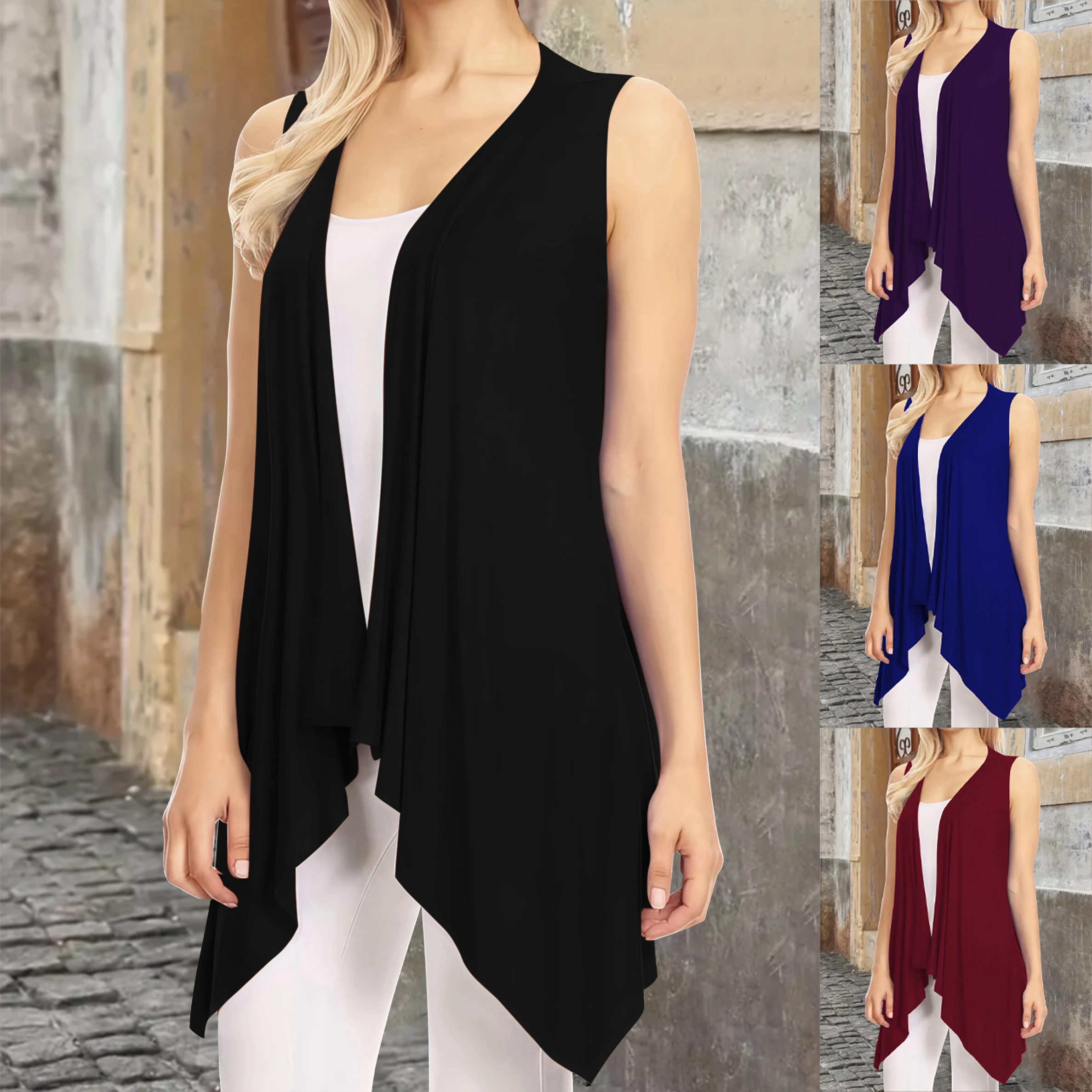 여성을 위한 우아한 민소매 오픈 프론트 카디건 조끼 - 플러스 사이즈 경량 드레이프 롱 조끼