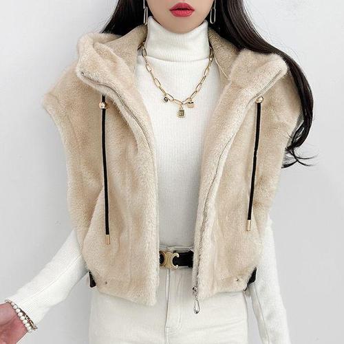 [앤클라인]인조 퍼 니트후드 조끼 AX3H4PF0290