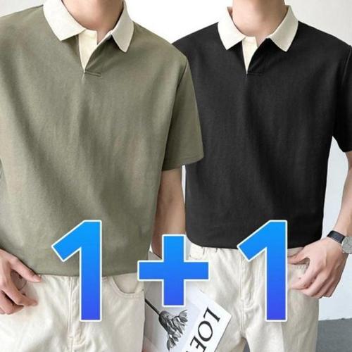 남자 반팔 티셔츠 남자 배색 1 반팔 카라티 유니폼 플러스 WFN3LN1