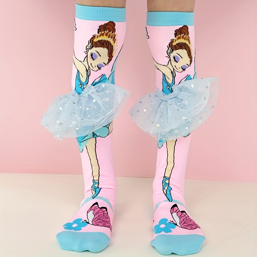 TEMU 핑크 발레 귀여운 소녀 행복한 양말 일상 캠퍼스 룩 선물용