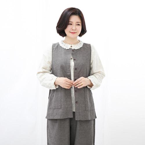 [모슬린]엄마옷 단추 면 생활한복 조끼 MQG125950 마담 미시 중년여성 빅사이즈 할머니옷 50대 60대 70대