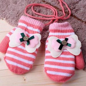 가을, 겨울 어린이 따뜻한 장갑 3-8 세 소년과 소녀 두꺼운 줄무늬 니트 전체 손가락 장갑
