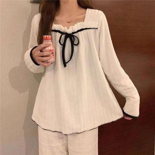 로시에 겨울 프렌치 리본 화이트 수면 잠옷 세트