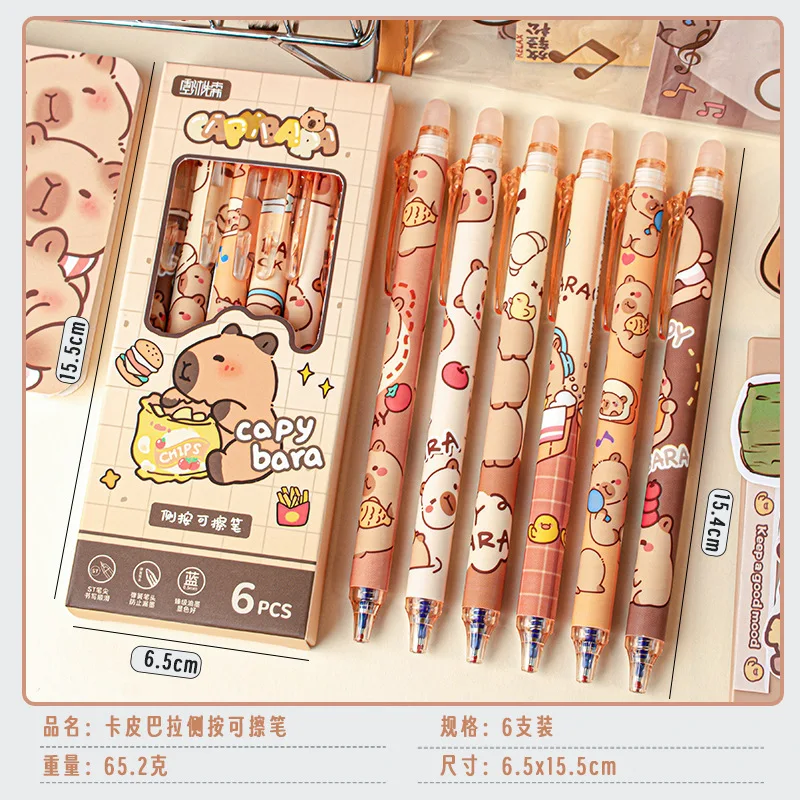 1세트/6개입 귀여운 지워지는 펜 카피바라 젤 펜 프레스 사무용품 학용품 문구 귀여운 재미있는 펜 선물