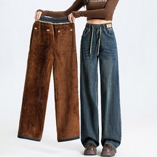 [즈본]여성 융기모청바지 융털바지 밍크 슬림일자 여자겨울 스판 데님팬츠