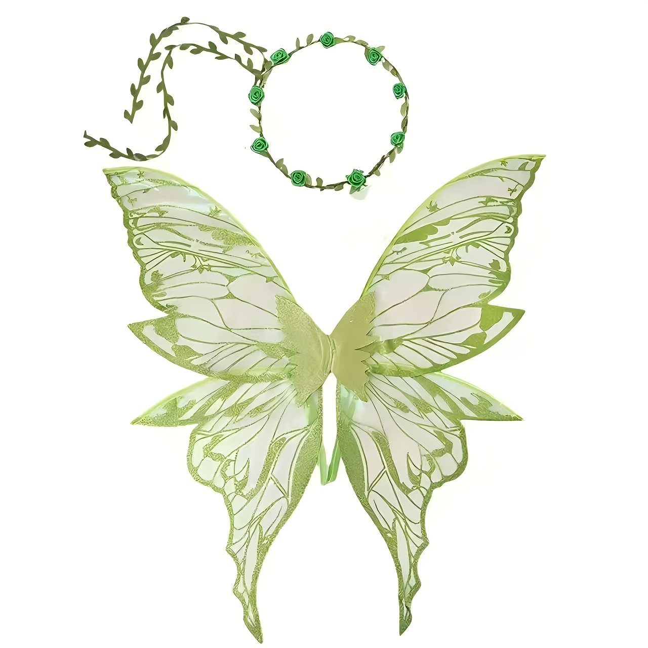 TEMU 성인용 요정 코스튬 세트, 역할극 나비 파티, 오간자 엘프 등장식, 휴일 파티 코스프레 의상, 금박 나비