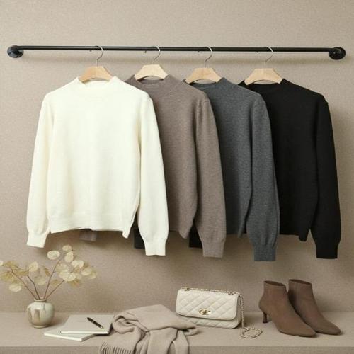 [옷자락][다잇템] 여자 이너티 롱슬리브 부드러운 무채색 모크넥 클래식 니트_23961240_588870