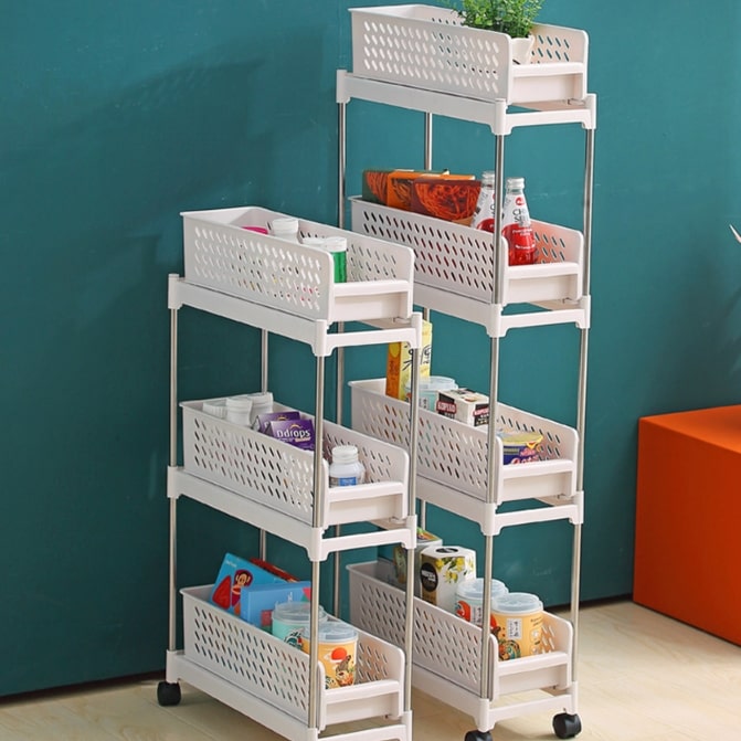 이동식 틈새 수납장 3단 4단 욕실 주방 수납