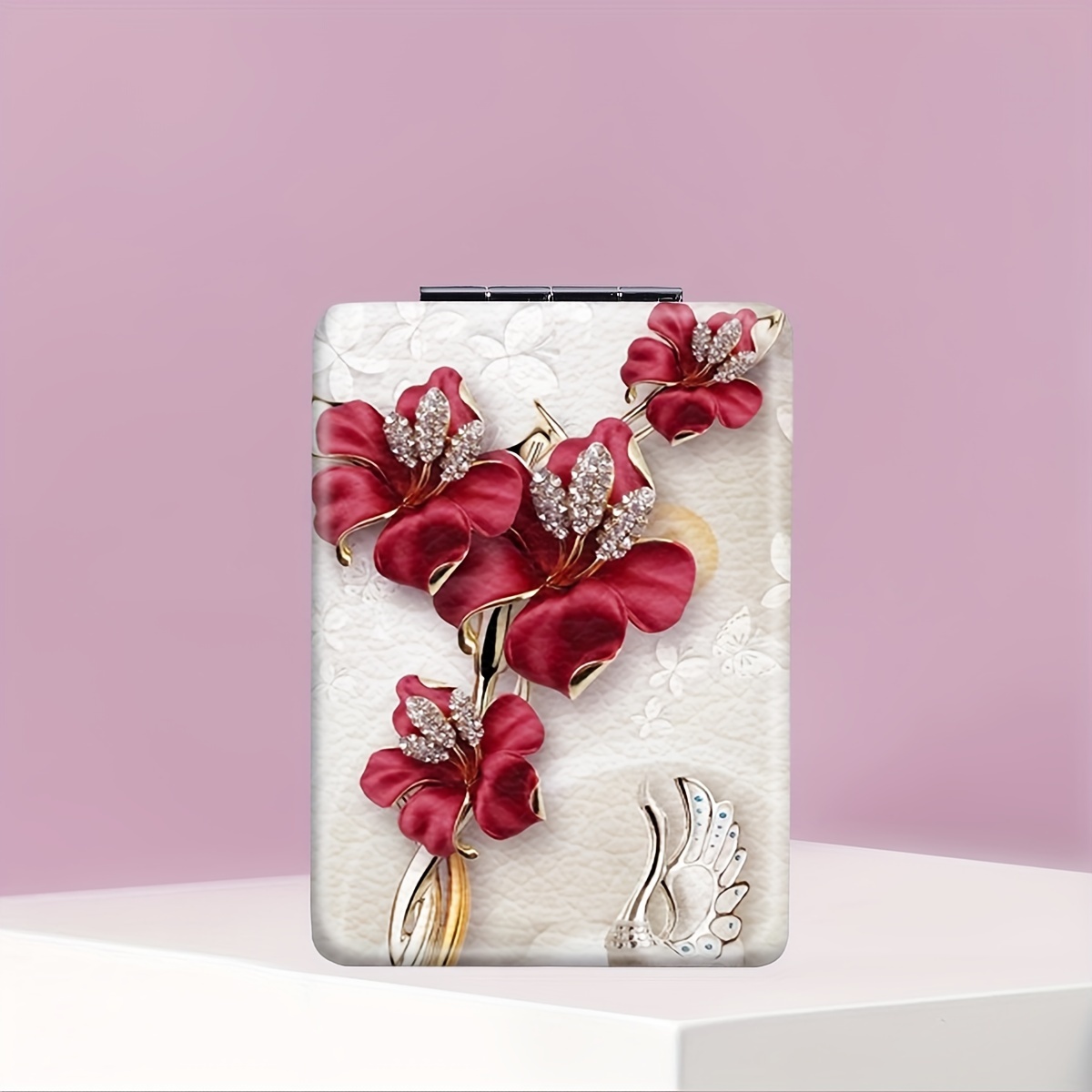 TEMU 플로랄 러브 나비 컴팩트 미러 - 휴대용 양면 접이식 메이크업 미러, 우아한 장미, 하트 & 나비 디자인 - 발렌타인데이, 크리스마스, 생일 & 결혼식에 여성, 자매, 친구를 위한 완벽한 선물, 컴팩트 메이크업 미러 | 나비 모티브 미러 | 우아한 디테일, 나비 미러