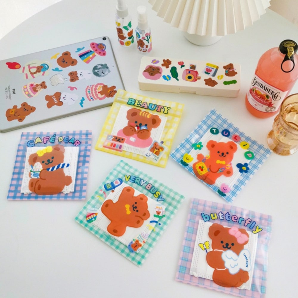 체크곰돌이 캐릭터 미니 방수 구디백 보관팩 여행용 지퍼백 파우치 5종