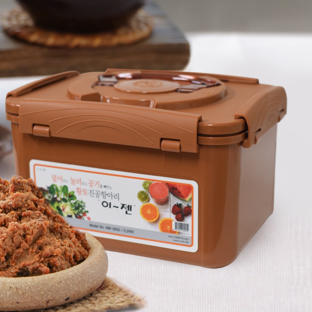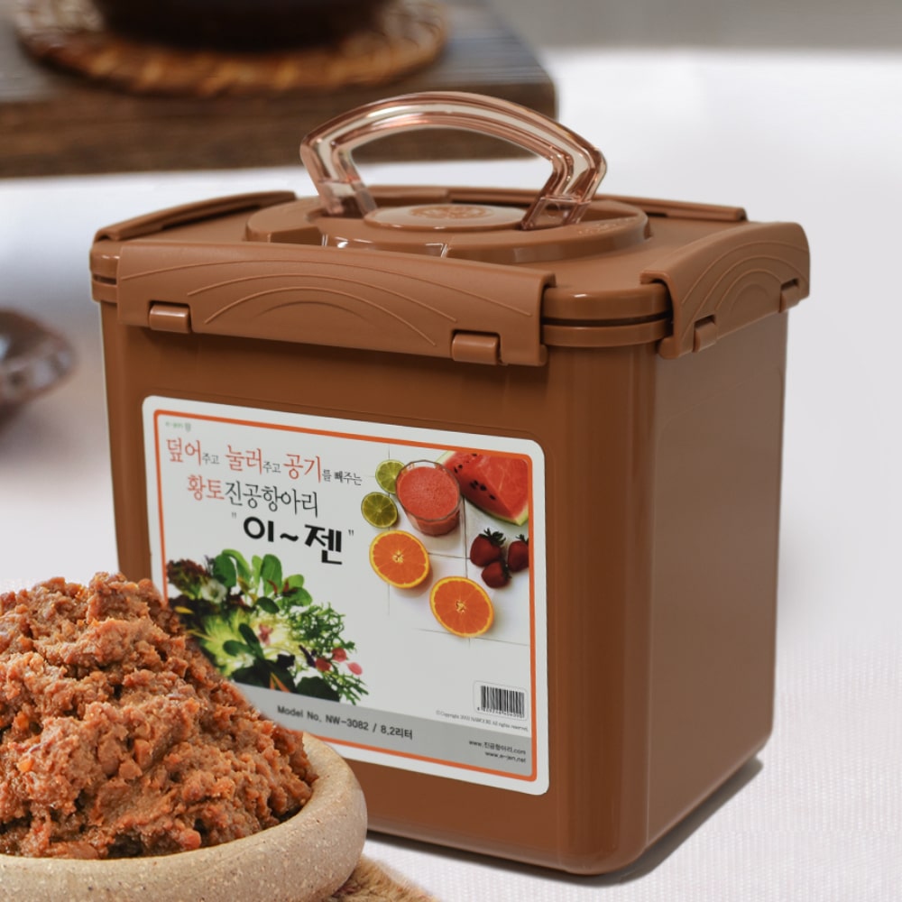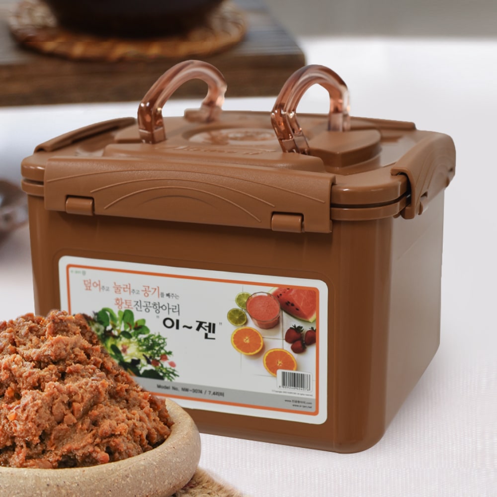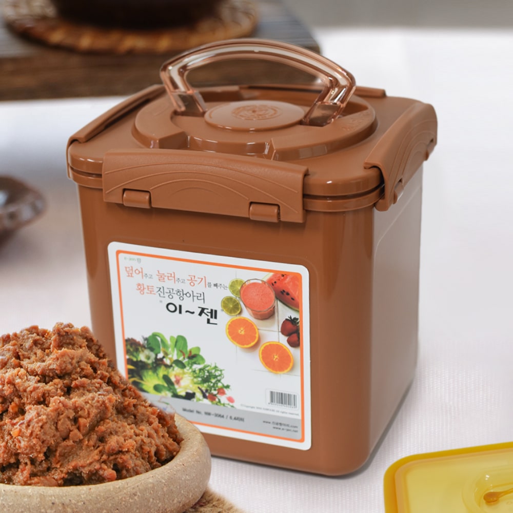 이젠 진공항아리 3.4리터 사각 황토 밀폐용기 김치통 반찬통 밀폐용기 보관용기