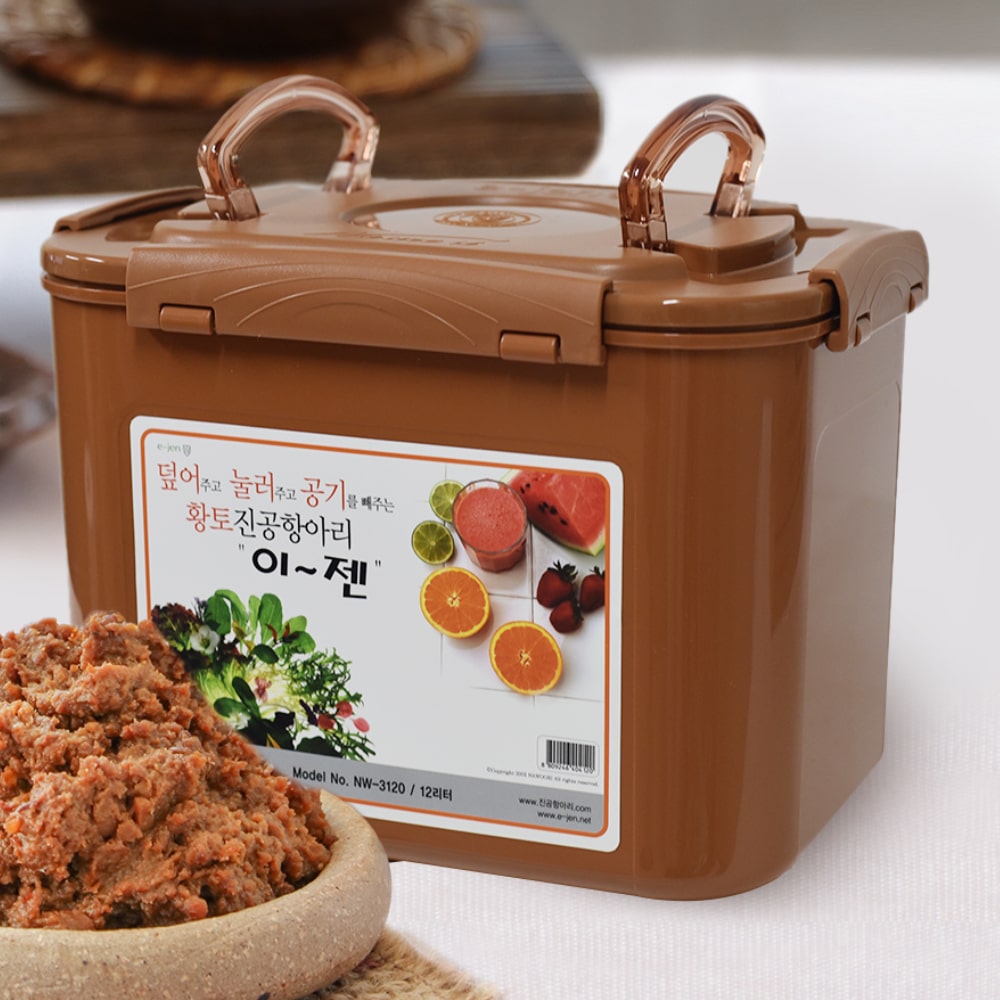 이젠 황토 진공 항아리 원형 12L 매실 오이지 절임 된장 고추장 김치 누름통