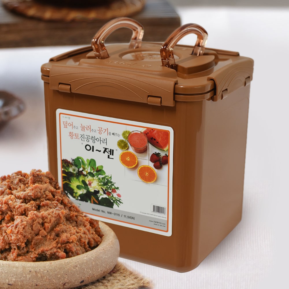 이젠 진공항아리 11.5리터 사각 황토 밀폐용기 김치통 반찬통 밀폐용기 보관용기