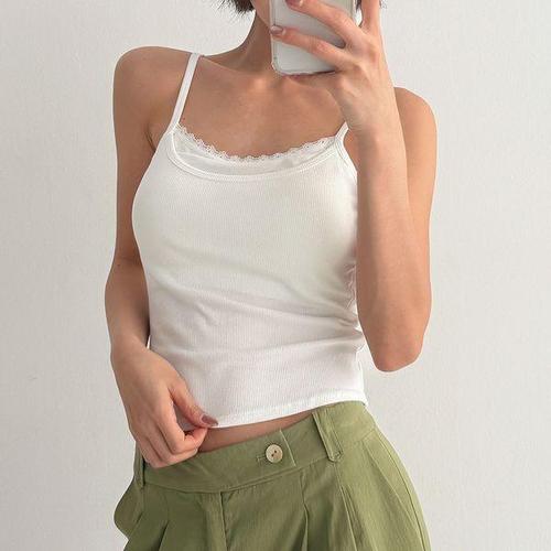 [유야]캡내장 이중 레이어드 레이스 골지 끈 나시 슬리브리스 -SL0055H- 여성 봄 여름