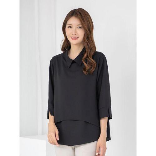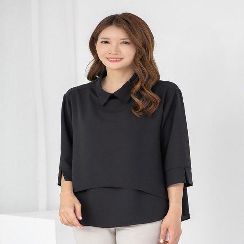 [모슬린]엄마옷 카라 이중라인 7부 블랙 블라우스 MQG125910 마담 미시 중년여성 빅사이즈 할머니옷 50대..